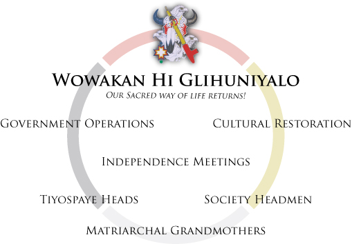 The Independent Lakota Nation (ILN) Government centers on Respectful Elders: those fluent Lakota speaking grandmothers and grandfathers of proven Lineal Descent. By virtue of their long life, vision, and preservation of the Lakota language, decision making power is theirs.